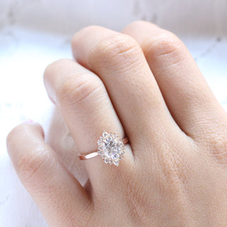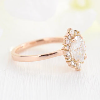 1.50 CT Oval Cut Cluster Halo Style Moissanite Engagement Ring