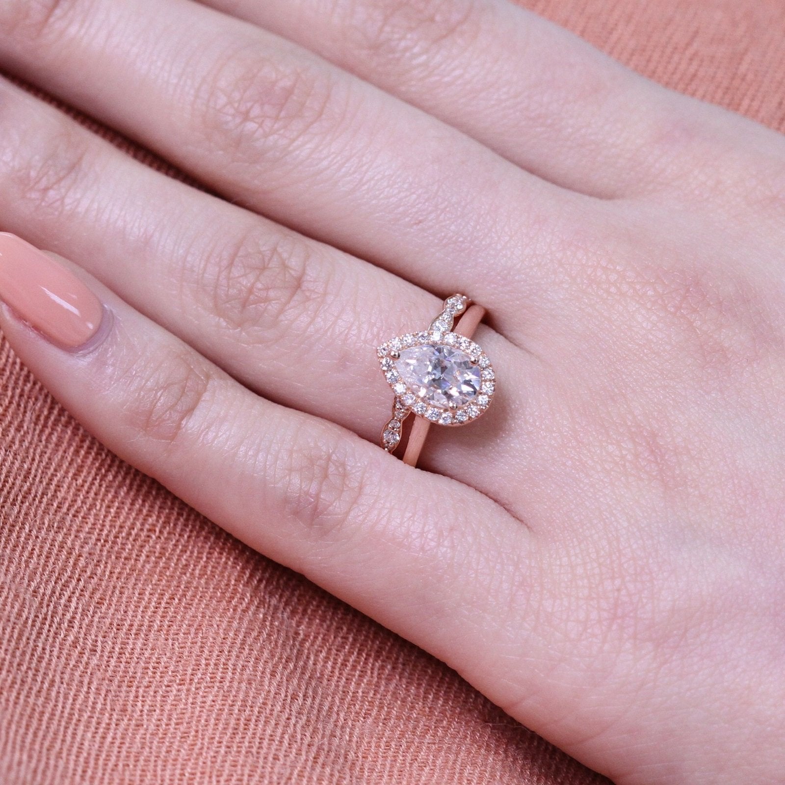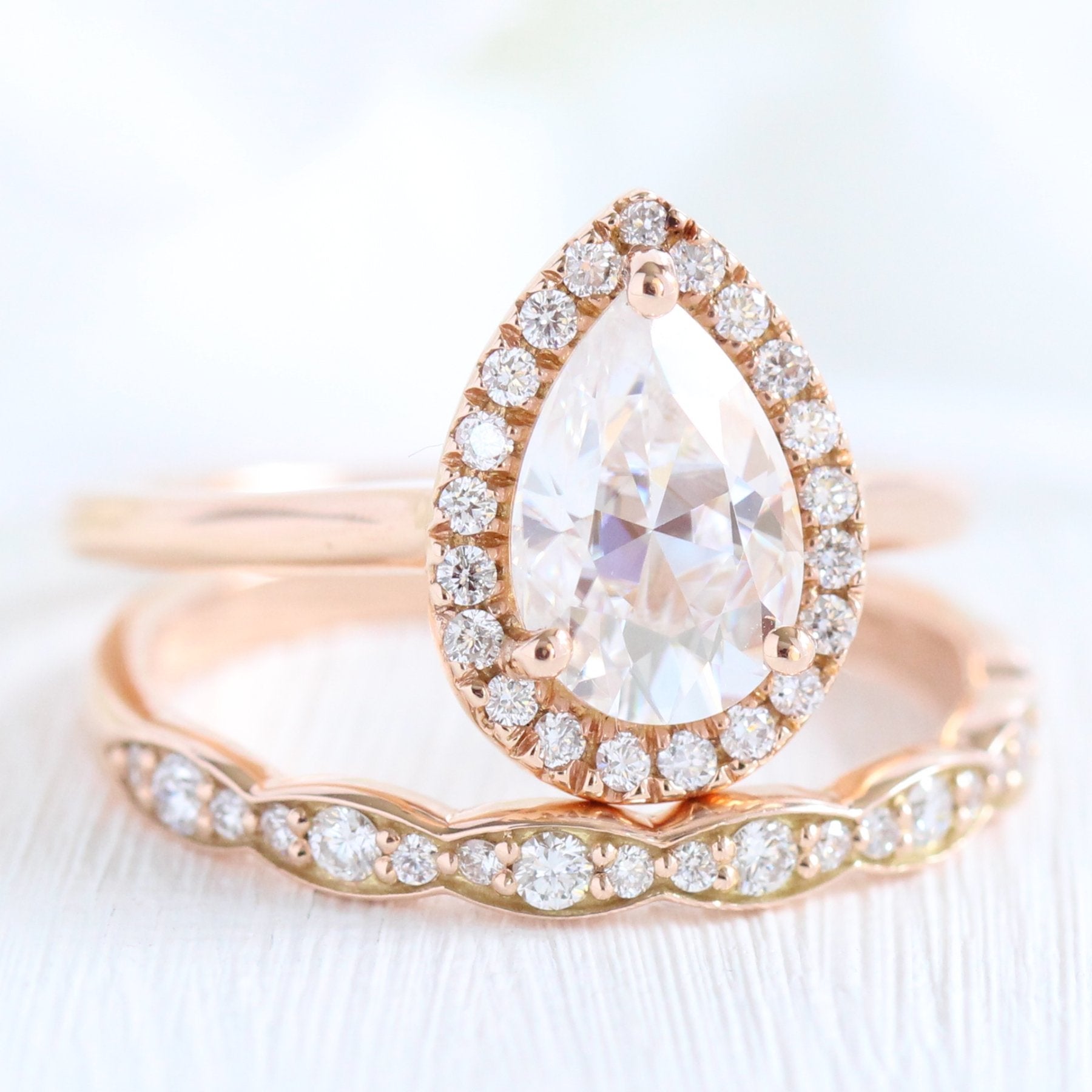 1.50CT Pear Cut Moissanite Halo Bridal Ring Set – Darby Diamonds LLC