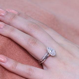 1.50CT Pear Cut Moissanite Halo Bridal Ring Set