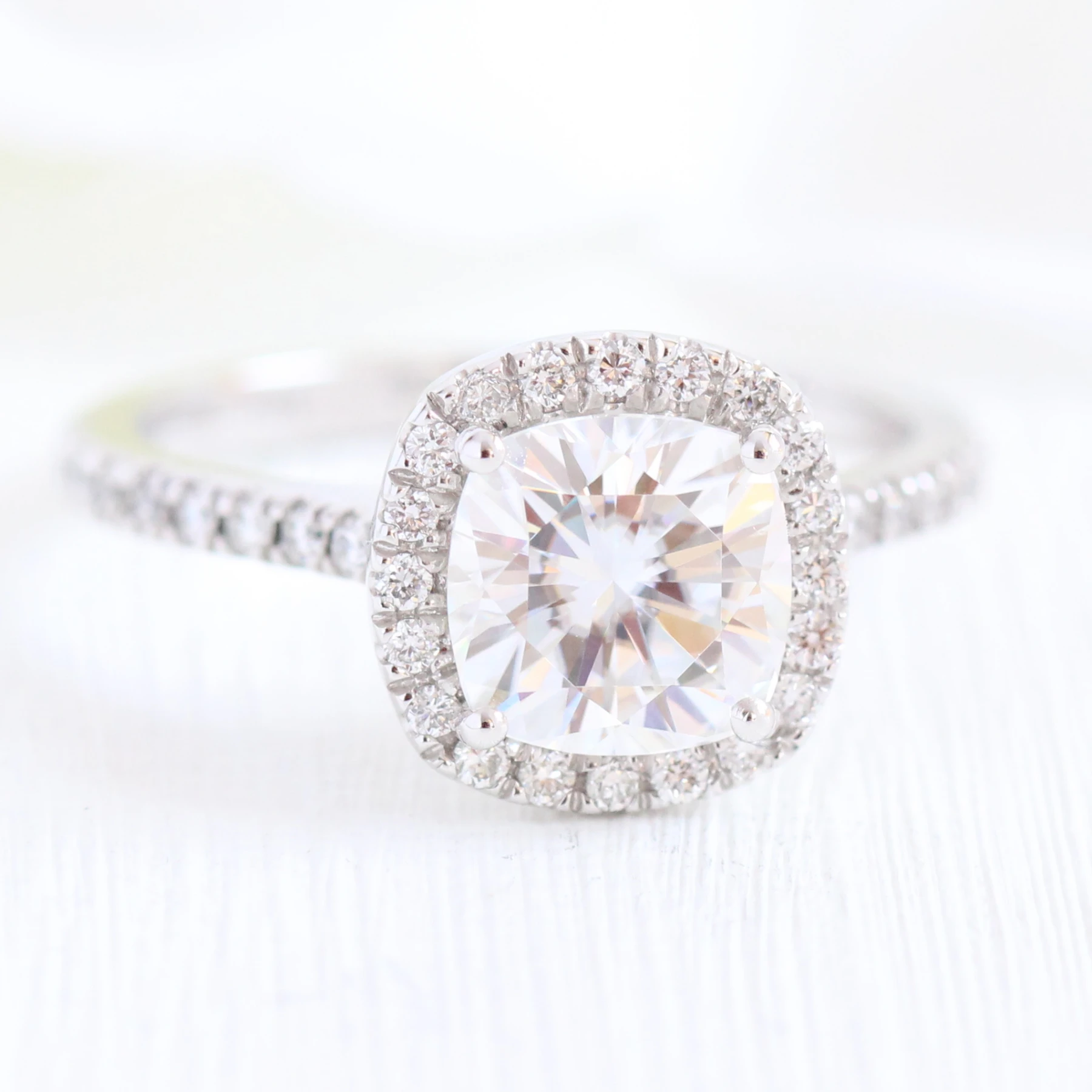 1.65CT Cushion Cut Moissanite Halo Engagement Ring – Darby Diamonds LLC