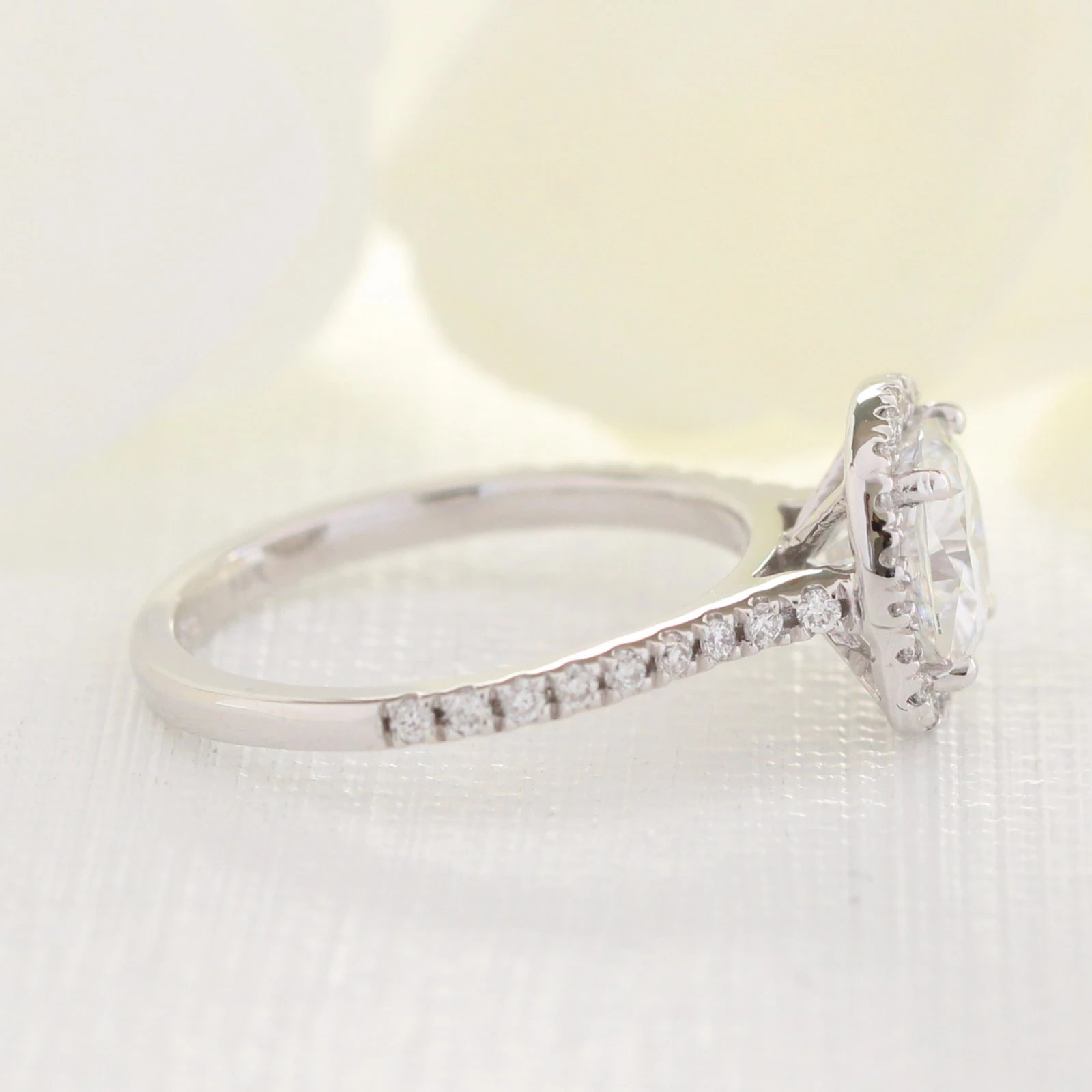 1.65CT Cushion Cut Moissanite Halo Engagement Ring