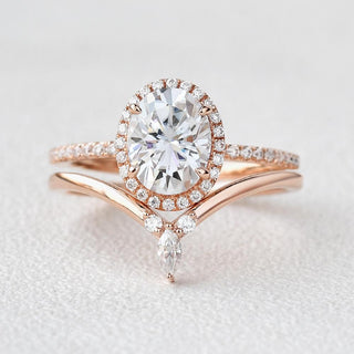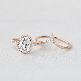 2.54CT Oval Cut Moissanite Halo Bridal Ring Set