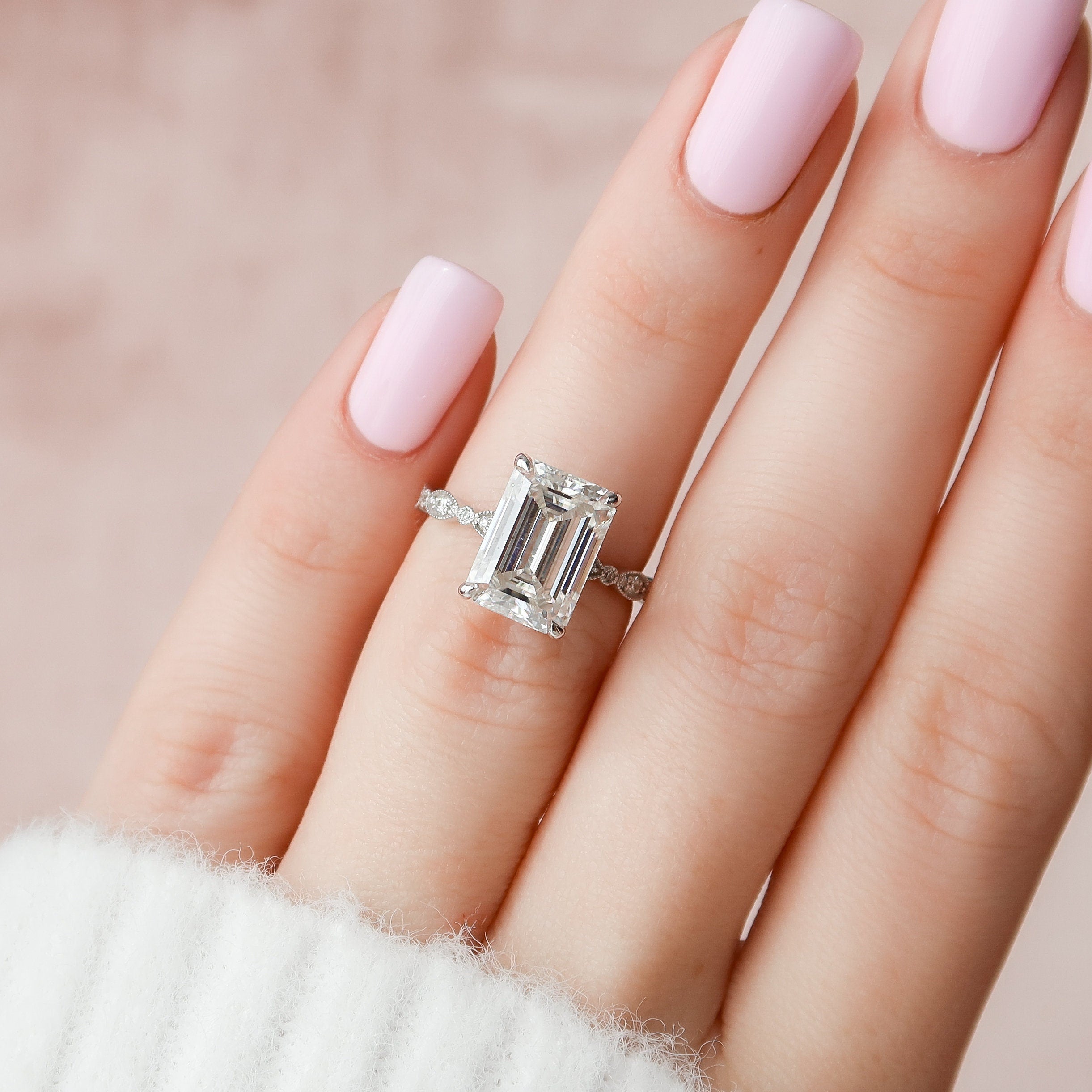 5.0 CT Emerald Cut Moissanite Pave Engagement Ring – Darby Diamonds LLC