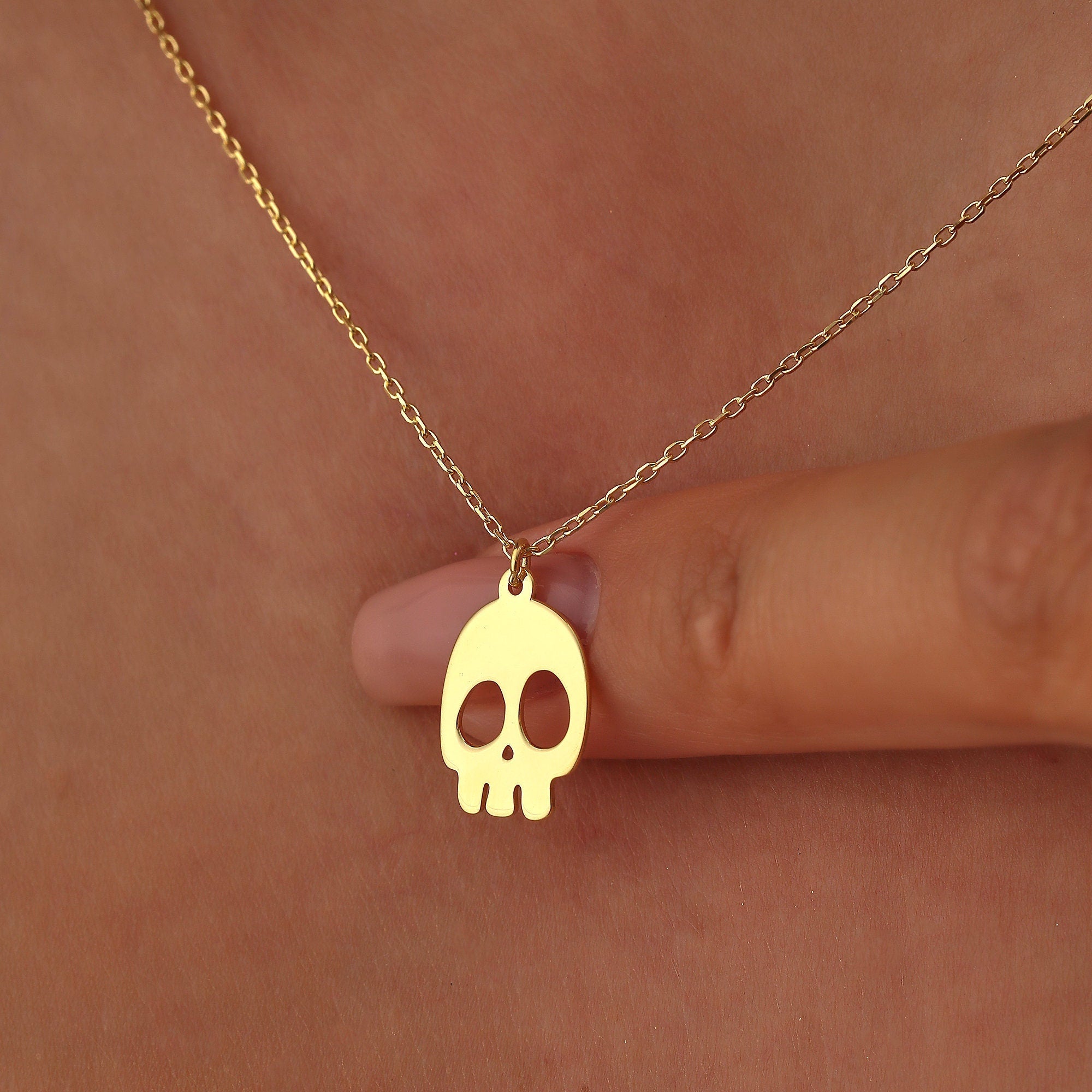 Solid Plain Gold Halloween Skull Ghost Pendant Necklace – Darby Diamonds LLC